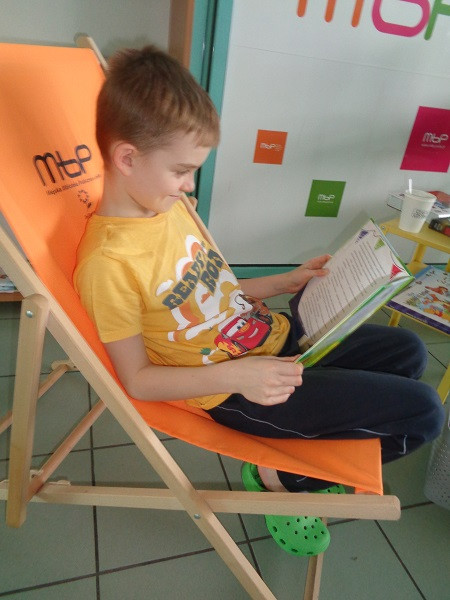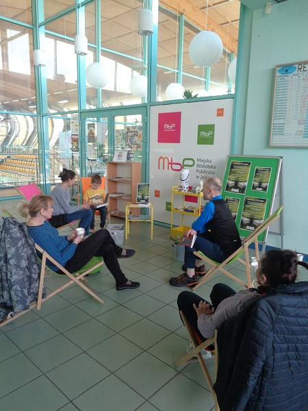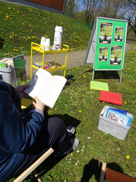 Z kolei 23 kwietnia zaprosiliśmy naszych czytelników do wzięcia udziału w akcji „Czas na czytanie”. Od godziny 11 do 12 na skwerze przed Krytą Pływalnią, a później na holu przed wejściem do biblioteki, czytaliśmy, smakowaliśmy herbatę i rozmawialiśmy na tematy różnorodne. Czytelnicy z okazji tego ważnego święta otrzymali drobne upominki: dorośli torby, a dzieci kolorowe tatuaże. Podsumowując: Czytanie to jedna z najlepszych aktywności dla mózgu, poszerza słownictwo, poprawia pamięć, koncentrację oraz rozwija empatię i wyobraźnię. Zdecydowanie warto czytać!