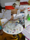 Mali uczestnicy mieli okazję rozwijać swoje umiejętności czytelnicze i twórcze oraz zadawać pytania, poszerzające wiedzę i wyobraźnię. Rozmawiali m.in. o Antarktydzie i Arktyce, o motylach – symbolach piękna i zmiany oraz tajemnicach kosmosu. Poznali życie biedronek, ich niezwykłe zachowania oraz sposoby, w jakie chronią swoje środowisko przed szkodnikami. Wysłuchali fascynujących historii o piratach, skarbach ukrytych na dnie oceanu oraz niezwykłych morskich stworzeniach. Mieli okazję zgłębić temat humoru, jego znaczenia oraz różnych form, które przybiera. W ramach twórczej zabawy z plastikowych butelek wykonali statki, modele Układu Słonecznego, kolorowe motyle oraz przygotowali koszyczki na skarby znalezione w różnych miejscach. Obejrzeli reprodukcje dzieł wybitnych twórców i dowiedzieli się jak różnorodne techniki tworzenia wykorzystują artyści. Tworzyli pełne marzeń kolaże, abstrakcje i rzeźby ze starych książek. Czytając wiele utworów poznali m. in. rezolutną Bułeczkę, bohaterkę serii książek autorstwa Sary Ohlsson, która uświadomiła im, że przegrana w grze to nie powód do obrazy. Przekonali się, że książka może mieć różne oblicza, można ją czytać, oglądać, bawić się nią, ale może też być dziełem sztuk. Spotkania cieszyły się dużym zainteresowaniem i były świetną okazją do wspólnej zabawy, nauki oraz integracji małych miłośników książek.