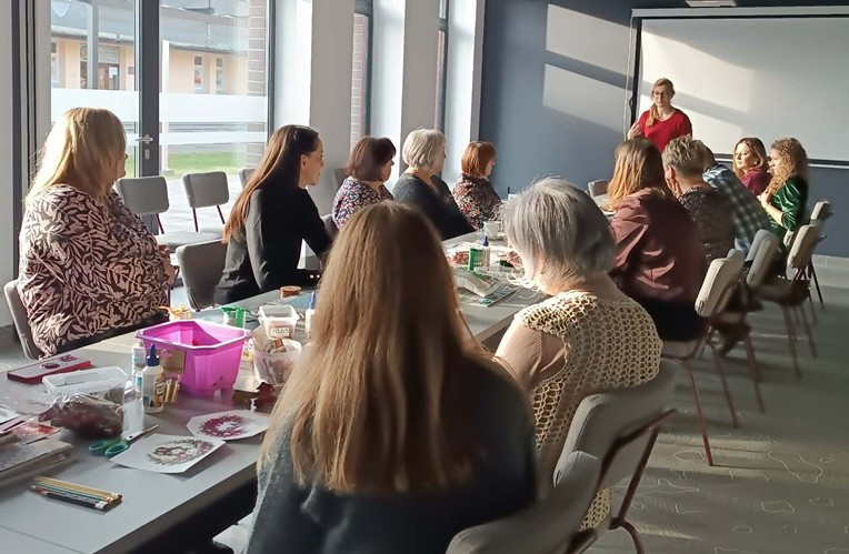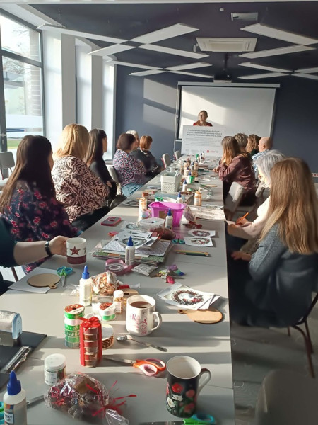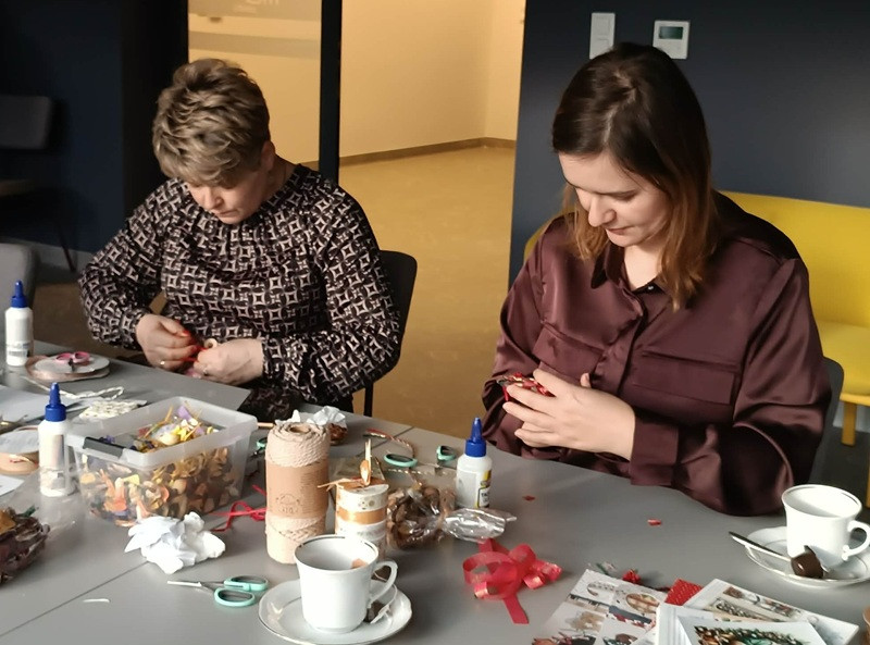 W przedświątecznej atmosferze, pełnej kreatywności i radości, odbyły się również wyjątkowe warsztaty artystyczne, których tematem były zawieszki świąteczne w stylu vintage. Podczas spotkania uczestnicy poznali podstawy kilku technik artystycznych, co pozwoliło stworzyć zróżnicowane, unikalne prace, łączące w sobie tradycję z nowoczesnością.