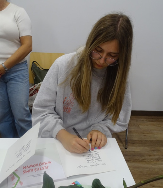 Spotkanie rozpoczęło się krótkim wprowadzeniem autorek, które opowiedziały o źródłach inspiracji do napisania książki oraz o tym, jak praca z dziećmi i młodzieżą ukształtowała ich podejście do tematu poczucia własnej wartości. Następnie czytały napisane przez siebie bajki, wprowadzając Klubowiczów w magiczny świat opowieści, emocji i marzeń. Wioleta Garstka czytała o Księżniczce Miogotce – bohaterce, która przekonuje nas, że nieważne jest to, co posiadamy, ale to, co dajemy innym. Agnieszka Gruszka przeczytała przygody „O pajączku Jagódce i tajemnicy akceptacji”, historii, która porusza ważny temat i uczy czytelników, że warto być sobą i szukać swojego miejsca w grupie, nawet gdy na początku wydaje się to trudne. Ewelina Reczek przeczytała opowiadanie Magdaleny Strzałki pt. „Miód na serce”, z którego dowiadujemy się, że dobro do nas wróci pod warunkiem, że będziemy żyli w zgodzie ze sobą oraz będziemy życzliwi i dobrzy dla innych. Natomiast Anna Potocka zaprezentowała utwór pt. „Miś Gustaw”, w którym marzenia stają się rzeczywistością, co czyni bohatera silniejszym i bardziej wiarygodnym, a jednocześnie przekonuje czytelników, że warto pielęgnować pragnienia, nawet jeśli wydają się nierealne. Po każdym odczytanym fragmencie dzieci były proszone o stworzenie ilustracji, na których przedstawiały swoją interpretację treści, ulubionego bohatera lub scenę z odczytanego fragmentu. Na zakończenie spotkania absolwentki podziękowały wszystkim za zaangażowanie i otwartość na czytanie oraz podkreśliły, że bajki nie tylko bawią, ale także uczą empatii, odwagi i wzajemnego szacunku. Dla czytelników Miejskiej Biblioteki Publicznej w Jaśle autorki podpisały egzemplarze swoich książek, które można wypożyczyć w Oddziale dla Dzieci i Młodzieży oraz filiach biblioteki.