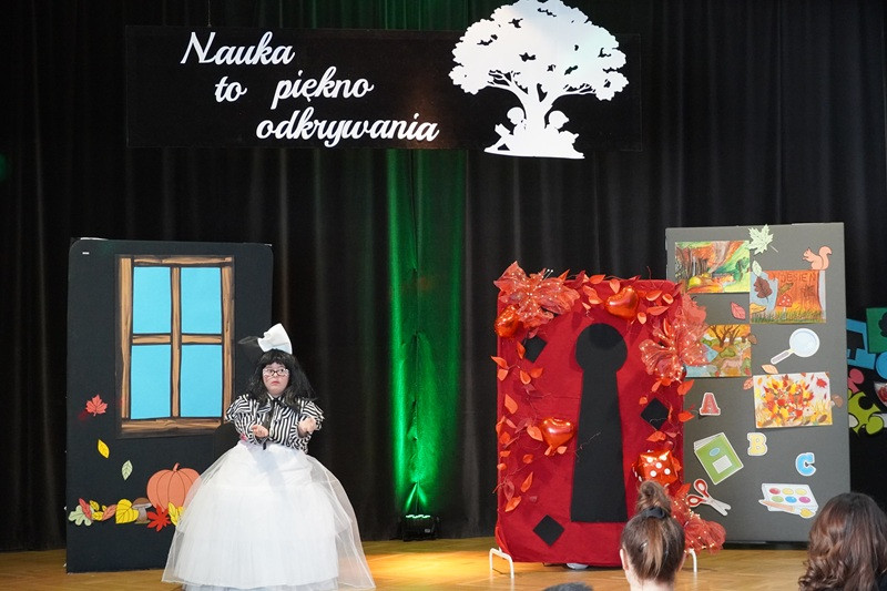 Zwieńczeniem wydarzenia było niezwykłe przedstawienie pt. „Alicja w Krainie Edukacji” w wykonaniu naszych utalentowanych podopiecznych z SOSW w Jaśle. Spektakl, inspirowany klasyczną opowieścią Lewisa Carrolla, został przekształcony w metaforyczną podróż przez świat edukacji włączającej. W tej wyjątkowej wersji Alicja trafia do krainy, w której każde dziecko – niezależnie od swoich możliwości – znajduje miejsce dla siebie. Spotyka postacie symbolizujące różne style uczenia się, potrzeby edukacyjne i emocjonalne, a także nauczycieli, którzy z otwartym sercem i umysłem towarzyszą uczniom w ich rozwoju. Przedstawienie było nie tylko artystycznym wydarzeniem, ale też głębokim przesłaniem o sile różnorodności, akceptacji i wspólnoty. Publiczność nagrodziła młodych aktorów owacjami na stojąco – to był moment pełen wzruszeń, który na długo pozostanie w naszej pamięci.