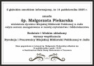 Z głębokim smutkiem informujemy, że 14 października 2025 r. zmarła śp. Małgorzata Piekarska