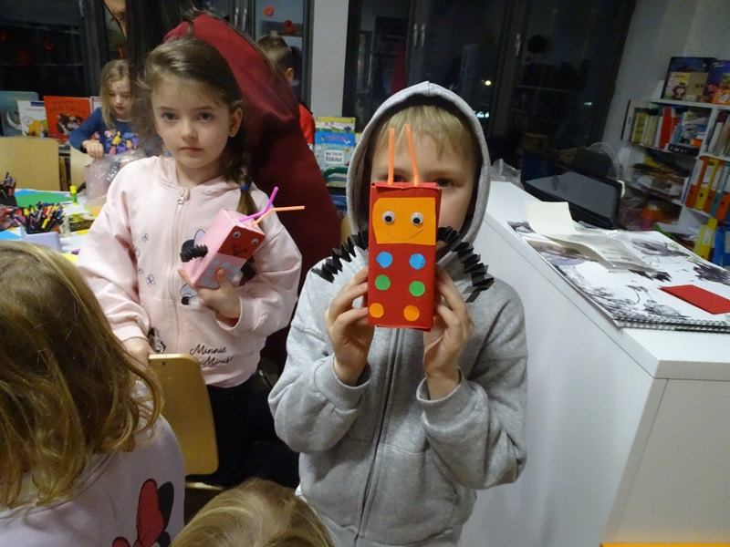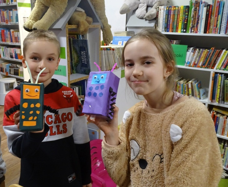 Prelegent wskazał, że choć Internet znacząco ułatwia codzienne funkcjonowanie, niesie również realne zagrożenia, takie jak uzależnienia, cyberprzemoc czy zaburzenia emocjonalne. Podkreślił rolę uważnej obecności dorosłych, budowania bliskiej więzi oraz świadomego towarzyszenia dziecku w świecie cyfrowym, aby nie zdominował on rzeczywistości. Omówił także wpływ intensywnych, szybko zmieniających się treści na najmłodszych – mogą one prowadzić do rozproszenia, niepokoju i nadmiernego pobudzenia niedojrzałego układu nerwowego. Zaznaczył, że rozwijający się mózg dziecka potrzebuje stabilnego i przewidywalnego środowiska opartego na stałych elementach oraz bezpośrednich relacjach. Równocześnie odbyły się warsztaty dla dzieci, podczas których rozmawiano o zagrożeniach pojawiających się w sieci, takich jak kontakt z nieznajomymi, dostęp do nieodpowiednich treści czy udostępnianie danych osobowych. Uczestnicy dowiedzieli się, jak bezpiecznie korzystać z Internetu – dlaczego warto tworzyć silne hasła, chronić swoje dane oraz informować dorosłych o niepokojących sytuacjach online. Na zakończenie zajęć dzieci wykonały robota – telefon komórkowy. Była to nie tylko atrakcyjna forma zabawy, ale również sposób na utrwalenie wiedzy o odpowiedzialnym i bezpiecznym korzystaniu z nowych technologii.