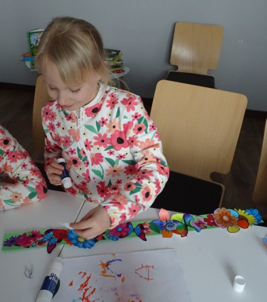 Celem zajęć było wprowadzenie dzieci w świat słów, rytmu i rymu, a także rozwijanie ich wyobraźni oraz umiejętności językowych. Zajęcia rozpoczęły się od krótkiej rozmowy na temat poezji podczas, której dzieci dowiedziały się, czym jest wiersz i jakie emocje może wyrażać. Po wysłuchaniu znanych utworów, uczestnicy wykonali wiosenną opaskę, która była pełna kolorów i symboli budzącej się do życia przyrody
