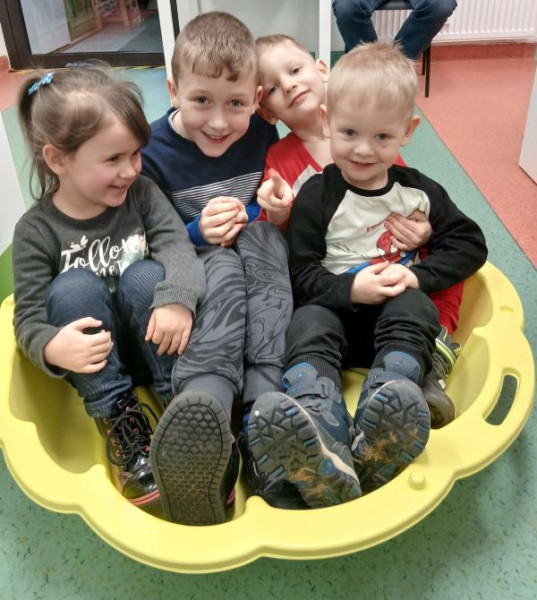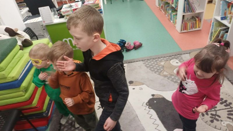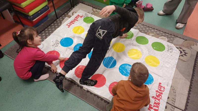 Na ostatnich zajęciach było głośno i wesoło. Odgadywaliśmy trudne zagadki Smoka Obiboka, zagraliśmy w grę Twister, która wymaga sprawności, gibkości i dużej dawki humoru. Zazwyczaj kończy się upadkiem, który wzbudza więcej śmiechu niż sama gra. Najwięcej frajdy sprawiła zabawa w „ludzkie perkusje”. Dzieci bardzo chętnie grały wiele znanych melodii za pomocą klaskania, pstrykania i tupania.