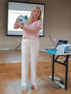 Następnie Dorota Woźnica – dyrektorka MBP w Jaśle, przestawiała prezentację „Biblioteki powiatu jasielskiego w roku 2023 – statystyki i refleksje". Wszyscy mogli zobaczyć, jak prezentuje się ich biblioteka na tle innych.