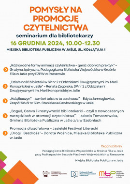 Miejsce: Miejska Biblioteka Publiczna w Jaśle 16 grudnia 2024, 10.00-12.30 (Sala edukacyjna)