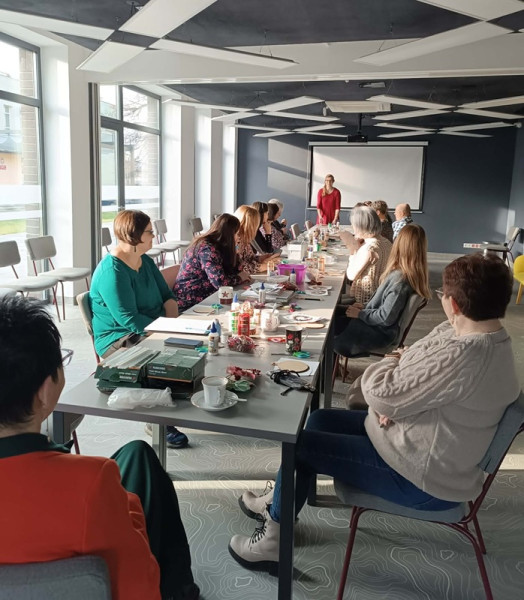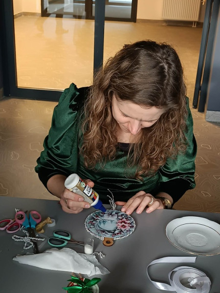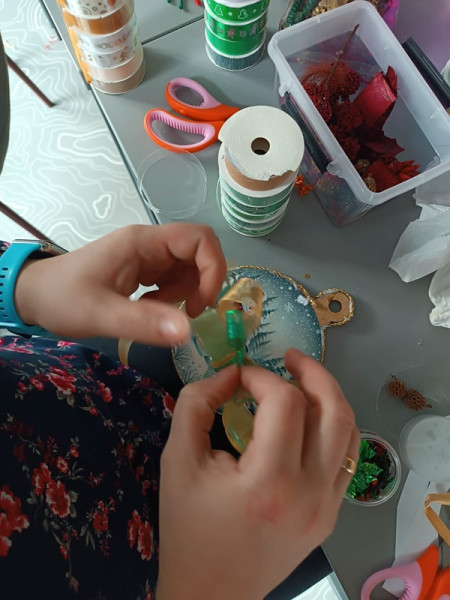 W przedświątecznej atmosferze, pełnej kreatywności i radości, odbyły się również wyjątkowe warsztaty artystyczne, których tematem były zawieszki świąteczne w stylu vintage. Podczas spotkania uczestnicy poznali podstawy kilku technik artystycznych, co pozwoliło stworzyć zróżnicowane, unikalne prace, łączące w sobie tradycję z nowoczesnością.
