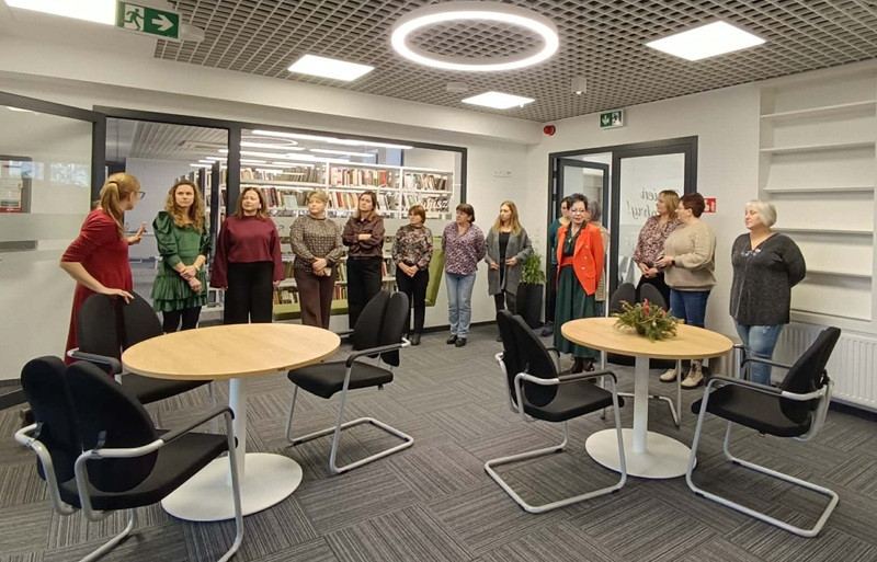 Bibliotekarze mieli możliwość zwiedzania przestrzeni bibliotecznych, które zostaną udostępnione czytelnikom w najbliższym czasie. Spotkanie sprzyjało wymianie doświadczeń na temat programu „Infrastruktura bibliotek”.