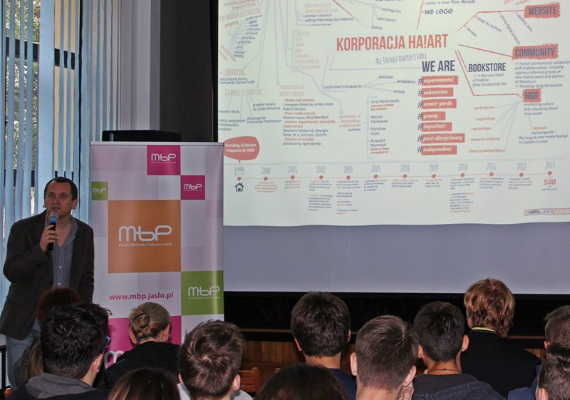 O „podziemnym kręgu” cyberliteratury oraz miejscu literatury we współczesnych mediach cyfrowych mówił 29 września 2015 na wykładzie w I Liceum Ogólnokształcącym w Jaśle dr Piotr Marecki. Obecnie w obszarze jego zainteresowań, leży wciąż zmieniająca się cyberliteratura, a stało się to za sprawą stażu, który odbywał w jednej z najlepszych technicznych uczelni na świecie - w Massachusetts Institute of Technology (USA). Opowiadał też o subkulturze Demosceny, która działała na zasadzie Podziemnego Kręgu (aluzja do filmu D. Finchera). Jej cechy to zły smak i alienacja subkulturowa.