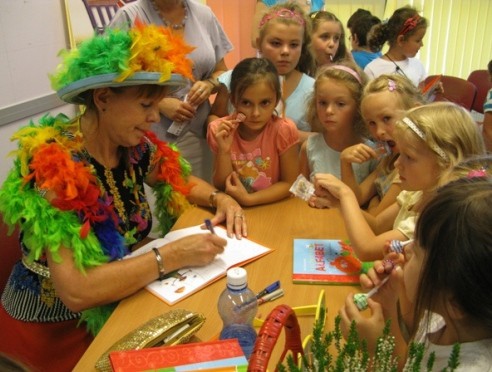 Rozmowy, śpiewu i dobrej zabawy na świeżym powietrzu nie zabrakło uczestnikom happeningu poetyckiego z Ewą Chotomską – reżyserką, scenarzystką, znaną m.in. z popularnego programu dziecięcego „Tik-Tak”.