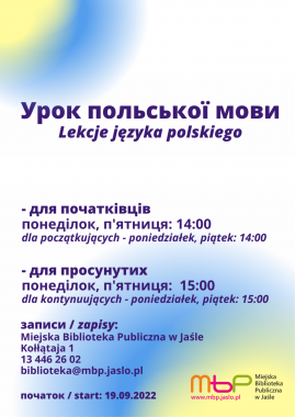 Serdecznie zapraszamy osoby dorosłe z Ukrainy na lekcje języka polskiego: