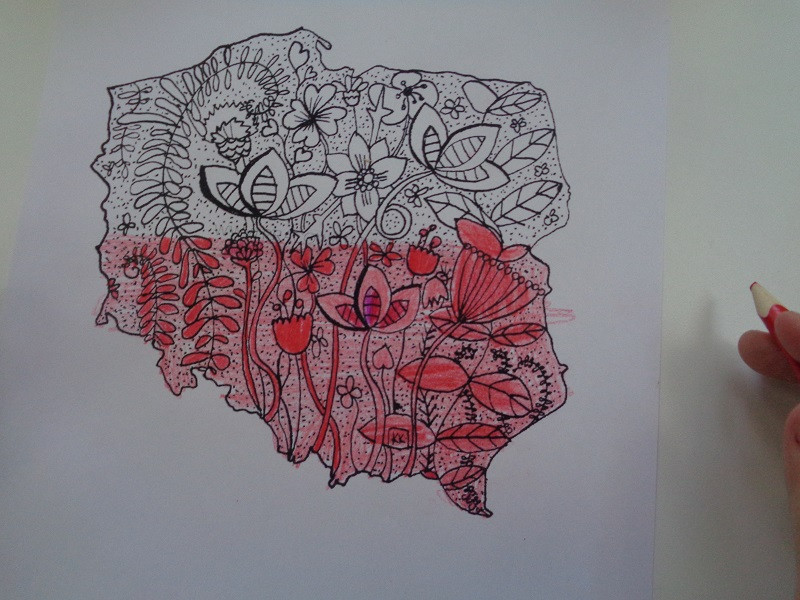 Na spotkaniu mieliśmy okazję do porozmawiania o Święcie Odzyskania Niepodległości. Wykonaliśmy kolorowe zentangle z mapą Polski.