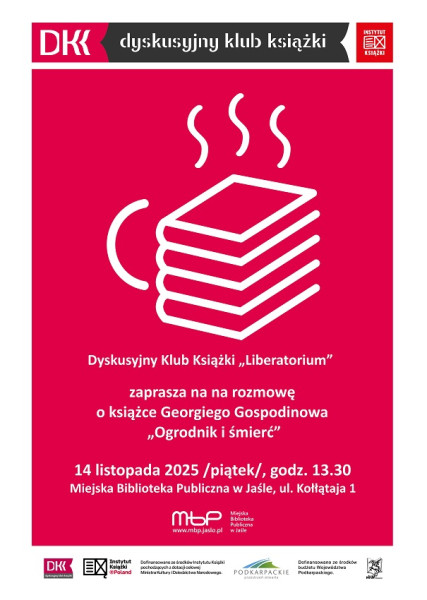 Spotkanie DKK „Liberatorium” odbędzie się 14 listopada 2025 /piątek/, godz. 13.30, Miejska Biblioteka Publiczna w Jaśle, Sala edukacyjna, ul. Kołłątaja 1.