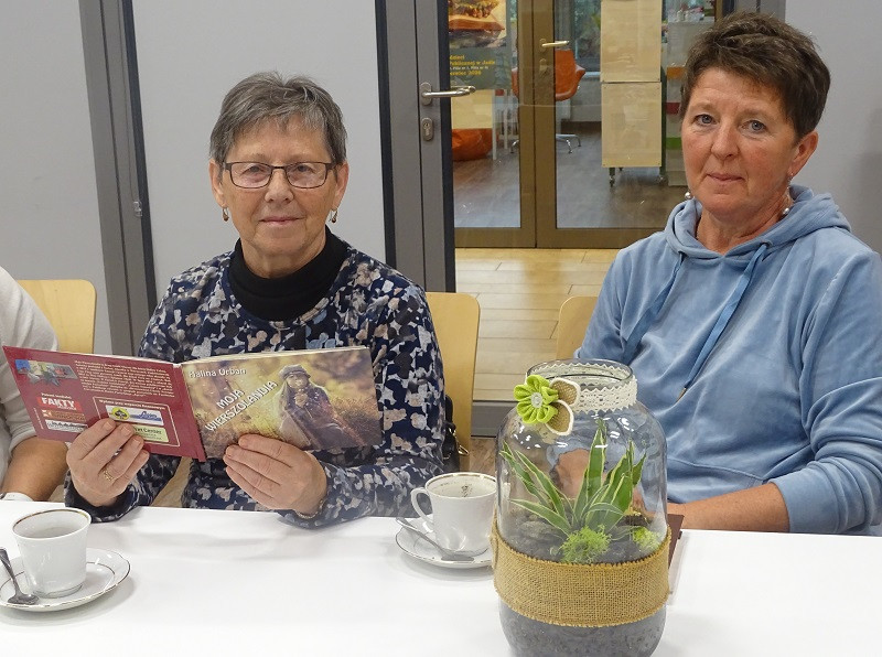 Na zakończenie Alicja Antonik i Teresa Macek opowiedziały o swoim rękodziele inspirowanym lasem m.in. filcowych haftach i obrazach, a Lidia Witkowska przyniosła wykonaną przez siebie kompozycję lasu w słoju.