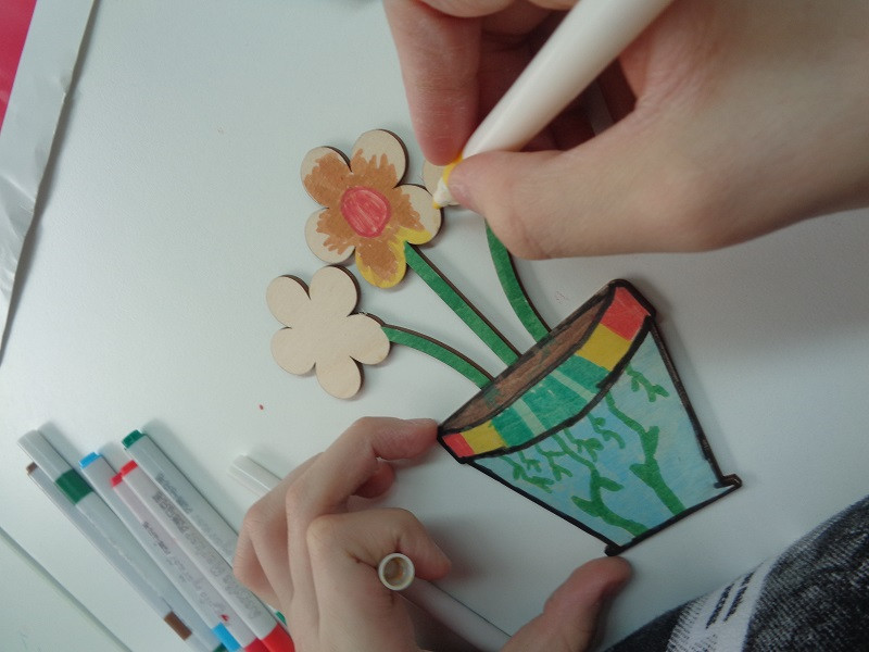 Na spotkaniu klubu, w wiosennym klimacie, klubowicze wykonali kolorowe dekoracje, które upiększyły wnętrze biblioteki.