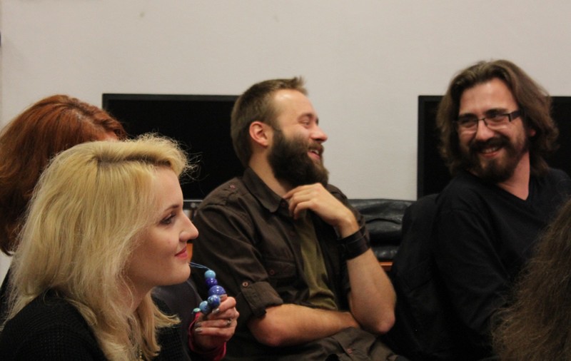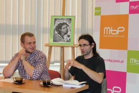 Zaproszonym gościem był Janusz Radwański (ur.1984r. w Kielcach) poeta, jak sam o sobie pisze „hodowca owiec, drumlista uliczny, separatysta kalenberski”. Publikował m.in. w „Frazie”, „Toposie”, i „Przeglądzie Powszechnym”. Zadebiutował tomikiem „ Księga wyjścia awaryjnego” . Prowadzi blog oraz jest współtwórcą audycji „Wszystko jest folkiem” w radiu „Studnia”. Basista grupy „Hadra”. Uczestnicy spotkania mieli przyjemność wysłuchania wierszy z najnowszego tomiku Radwańskiego pod intrygująco-śmiesznym tytułem „Chałwa zwyciężonym”. Jak pisze o nich krytyk literacki Joanna Mueller: „wiersze, które się nie pindrzą, nie mizdrzą, nie udają, nie kokietują, nie napinają sztucznie wątłych muskułów sensu. Wiersze po ludzku mądre, krzepkie i krzepiące, a jednocześnie zadziorne, podszyte dziecięcą brawurą i beztroską anarchią. Wiersze, które nie szeleszczą papierem, ale dają się dotknąć w tkliwą surowiznę. Uwielbiam przewrotny, niewyreżyserowany dowcip Radwańskiego, jego oko mistyka codzienności, a także jego czułość wobec opisywanego świata i otwartą zgodę na to, co się – w życiu i w piśmie – przydarza”. Poezja do poczytania wszędzie i o każdej porze. Jak to ujął sam Radwański: „Chałwa miała być książką dającą się czytać w pociągu i w ogóle wszędzie tam, gdzie czyta się inaczej niż w sali wykładowej, bunkrze sztuki czy w innym tam (z całym szacunkiem) muzeumie literatury reanimowanej.” U końca spotkania uczestnicy poznali odpowiedź na pytanie o kontrowersyjny tytuł tomiku, która jest umieszczona na samym jego początku: „Poradnik. Jak nie dawać sie rozpaczy? Jak najdłużej.”