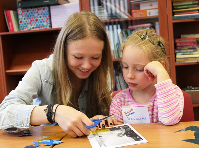 Spotkanie było też okazją do odkrycia czym są tajemnicze hold to light postcard czyli widokówki z ukrytym obrazem. Wykorzystując specjalną technikę ukrytego obrazu, mali klubowicze, stworzyli wakacyjne obrazy i portrety, które po podświetleniu „pokazywały” dodatkowy obraz. Moja siostra zrobiła pocztówkę, na której wygląda jak królowa. Podświetla ją i pojawia się korona– opowiadał Damian. Ale ja wolę swoją, na której pojawia się duch! – dodał na zakończenie.