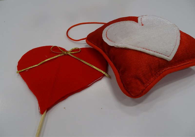 Rękodzielniczki Teresa Macek i Lidia Witkowska wspólnie z uczestniczkami ozdabiały okazjonalne słoiczki wypełnione słodyczami, a także przygotowywały filcowe poduszeczki i serca na patyku.