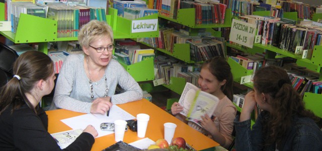 Co zrobić kiedy życie przypomina horror, ciotka zaczyna chodzić po suficie i nie ma kogo prosić o pomoc? Odpowiedź na te pytania znaleźli uczestnicy spotkania Młodzieżowego Dyskusyjnego Klubu Książki „Zaczytani” w Miejskiej Biblioteki Publicznej w Jaśle, którzy 24 września 2015 r. dyskutowali o książce Mariusza Szczygielskiego Za niebieskimi drzwiami.