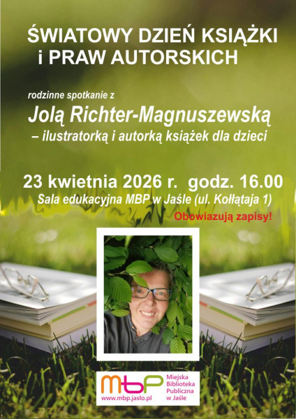 23 kwietnia (czwartek) 2026 r. o godzinie 16.00 w ramach Dnia Książki i Praw Autorskich odbędzie się spotkanie z Jolą Richter-Magnuszewską – ilustratorką i autorką książek dla dzieci.