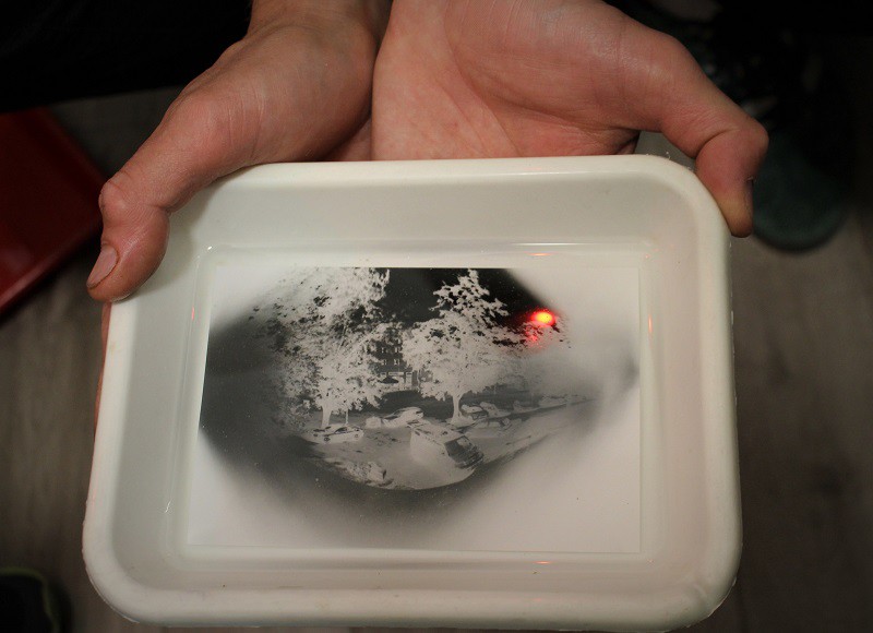 W pierwszym dniu warsztatów prowadzący krótko przedstawił schemat działania przyrządu optycznego nazywanego ciemnią optyczną znaną pod nazwą camera obscura. Uczestnicy warsztatów samodzielnie zbudowali urządzenie wykorzystując poczernioną wewnątrz puszkę po pomidorach, kalkę techniczną, kartony oraz klej na gorąco. Każdy uczestnik stworzył swój własny aparat. Po włożeniu do każdego z urządzenia papieru fotograficznego, grupa udała się przed budynek biblioteki, gdzie każdy wybrał obiekt lub model do sfotografowania oraz ustalił odpowiednią długość czasu naświetlania. Po powrocie do ciemni fotograficznej i wywołaniu zdjęć okazało się kto zastosował odpowiedni czas naświetlania. Druga próba była już formalnością i w rezultacie wszyscy uczestnicy warsztatów mogli cieszyć się pięknym i pomysłowym zdjęciem wykonanym puszką po pomidorach. Młodzi odbiorcy mogli zobaczyć wywołane zdjęcia w formie negatywu, a za pomocą prostej aplikacji telefonicznej obejrzeć rezultaty swojej pracy w formie pozytywu. Poznali też termin fotoluminescencja i sprawdzili jak działa w praktyce.