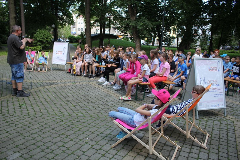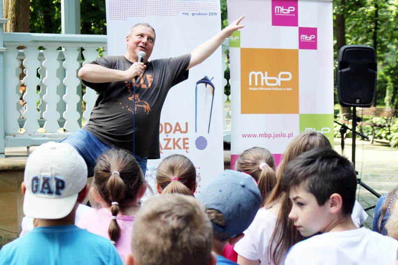 W dniu 6 czerwca br. w ramach projektu ZaPODAJ KSIĄŻKĘ! w Parku Miejskim odbyło się spotkanie z Marcinem Pałaszem – autorem prawie 40 zabawnych, przewrotnych i nieco zwariowanych książek dla dzieci i młodzieży. W wydarzeniu wzięli udział uczniowie ze Szkoły Podstawowej nr 1, 4 oraz 12 w Jaśle.