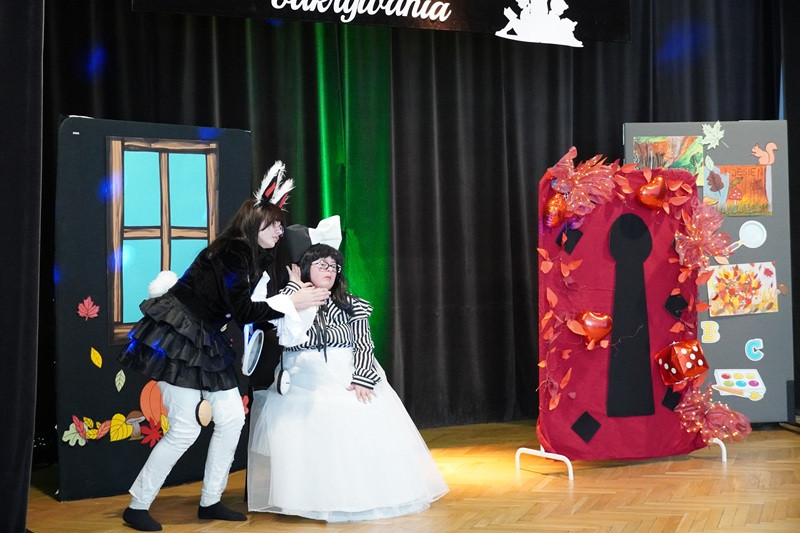 Zwieńczeniem wydarzenia było niezwykłe przedstawienie pt. „Alicja w Krainie Edukacji” w wykonaniu naszych utalentowanych podopiecznych z SOSW w Jaśle. Spektakl, inspirowany klasyczną opowieścią Lewisa Carrolla, został przekształcony w metaforyczną podróż przez świat edukacji włączającej. W tej wyjątkowej wersji Alicja trafia do krainy, w której każde dziecko – niezależnie od swoich możliwości – znajduje miejsce dla siebie. Spotyka postacie symbolizujące różne style uczenia się, potrzeby edukacyjne i emocjonalne, a także nauczycieli, którzy z otwartym sercem i umysłem towarzyszą uczniom w ich rozwoju. Przedstawienie było nie tylko artystycznym wydarzeniem, ale też głębokim przesłaniem o sile różnorodności, akceptacji i wspólnoty. Publiczność nagrodziła młodych aktorów owacjami na stojąco – to był moment pełen wzruszeń, który na długo pozostanie w naszej pamięci.