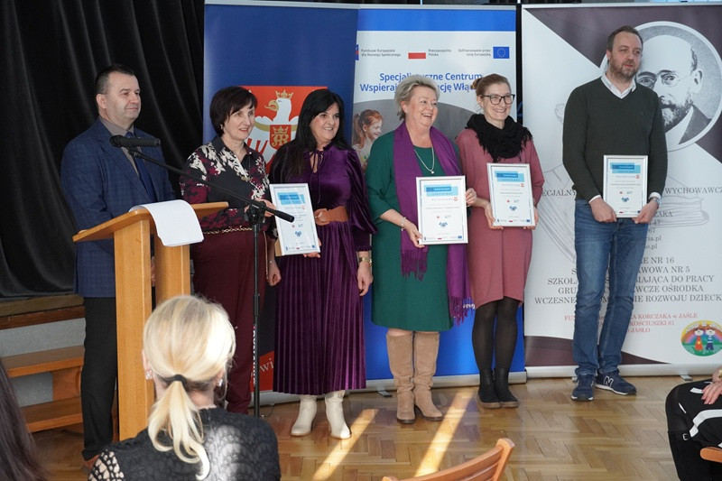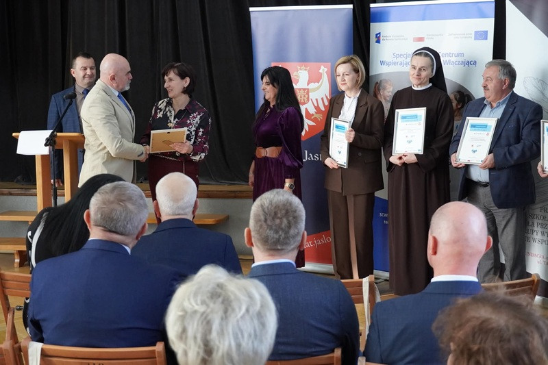 i zaangażowaniem realizują ideę edukacji włączającej. Wręczone zostały również certyfikaty partnerstwa i współpracy przedstawicielom placówek oświatowych oraz instytucji działających na rzecz dziecka i rodziny. Aktu tego dokonały: Wiceprzewodnicząca Rady Powiatu w Jaśle Irena Baciak oraz Przewodnicząca Komisji Edukacji, Kultury, Sportu i Turystyki Cecylia Piwowar-Nadymus.