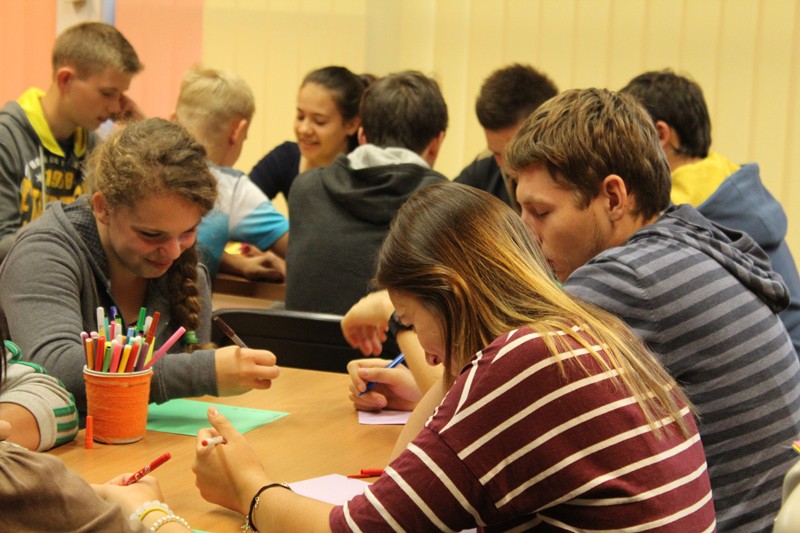 Młodzież uczestnicząca w warsztatach „Dobrze po-wiedzieć” zmierzyła się z językowymi niuansami i zagadkami. Uczestnicy odnajdywali znaczenia związków frazeologicznych, szukali nacechowanych ekspresyjnie odpowiedników często używanych wyrazów, porównywali style mówienia. Przekonali się także, że często nasze ciało i gesty mówią za nas, a najwięcej emocji w komunikacji zdradzają… stopy. Dlatego, by „dobrze po-wiedzieć” trzeba zwracać uwagę na wiele czynników i ciągle pogłębiać wiedzę o języku.