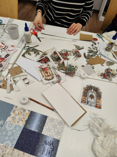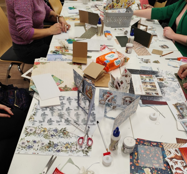 1 grudnia 2025 r. dorośli oraz starsza młodzież mieli okazję wziąć udział w bezpłatnych świątecznych warsztatach scrapbookingowych zorganizowanych w Miejskiej Bibliotece Publicznej w Jaśle.
