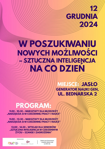 Miejska Biblioteka Publiczna w Jaśle 12 grudnia 2024 r. zaprasza do udziału w warsztatach oraz wykładzie poświęconych sztucznej inteligencji.