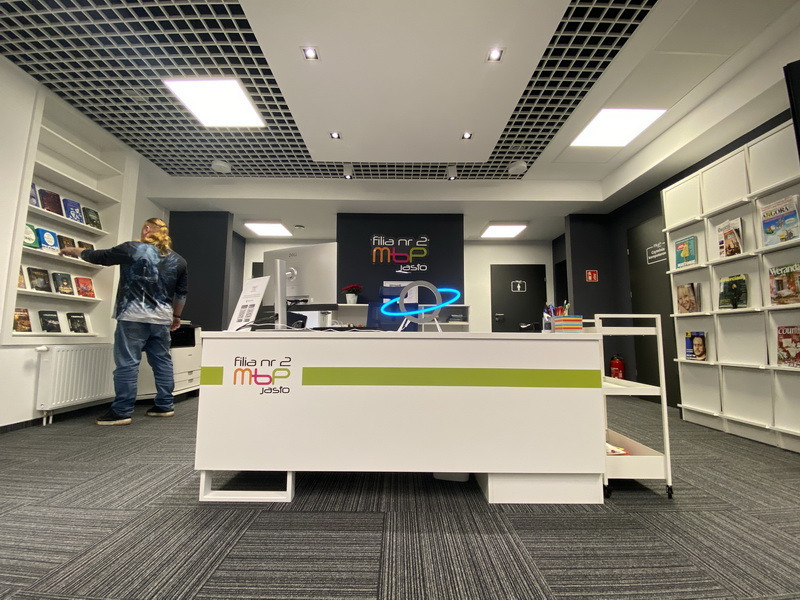 Dzięki projektowi „Przebudowa i rozbudowa budynku przy ul. Kopernika dla potrzeb Filii nr 2 Miejskiej Biblioteki Publicznej w Jaśle” przestrzeń filii powiększyła się o ponad 400 m2 oraz zyskała nowe funkcjonalności i wyposażenie. Obecnie Filia nr 2 zajmuje całe piętro dawnej „małej Czwórki”. Użytkowników wita przestronny hol a w nim półki z nowościami książkowymi i bogaty wybór czasopism. Z holu przechodzimy do książkowej strefy dorosłych oraz osobnej, pięknie i przytulnie urządzonej strefy dzieci. Swoją własną przestrzeń z książkami, komputerami, planszówkami i wygodnymi miejscami do siedzenia znajdzie także młodzież. Dla osób potrzebujących ciszy i skupienia do pracy lub nauki przeznaczona będzie czytelnia komputerowa. Piękną i klimatyczną salę na spotkania i warsztaty mają także seniorzy. Na parterze znajduje się sala konferencyjna, w której odbywać się będą liczne spotkania autorskie i inne wydarzenia kulturalne i edukacyjne. Dostępność i komfort korzystania będą wspomagać winda i książkomat.
